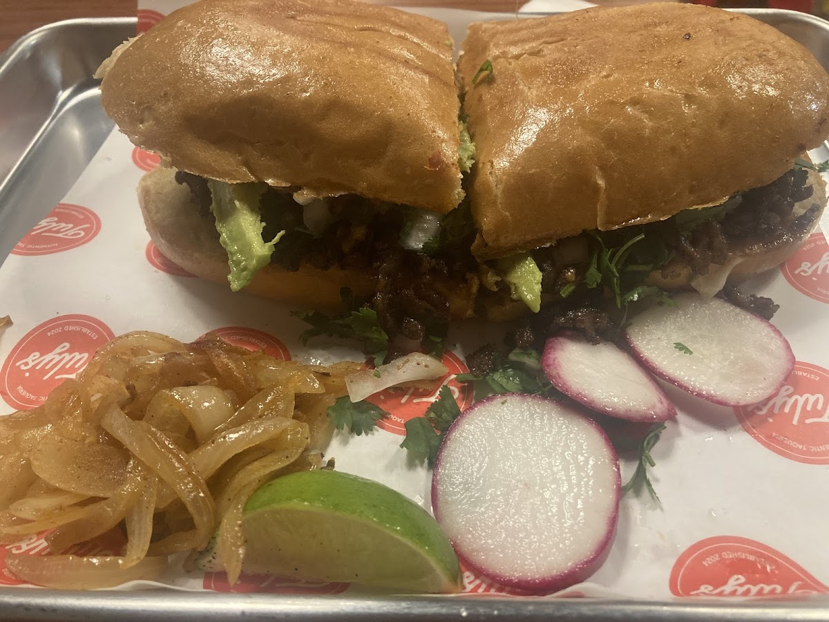 The place is beautiful and clean, the service is top notch and the food was delicious my favorite is the half torta and two tacos you can choose your preferred meat. My favorite were the agua Fresca pineapple flavor. The atmosphere feels great.